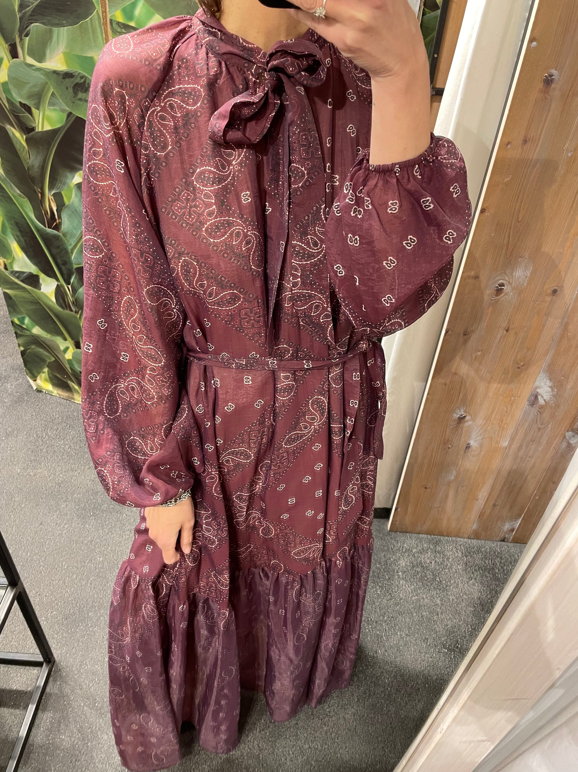 Un abito lungo che cattura lo sguardo con la sua raffinata stampa fantasia. La silhouette fluida e il taglio morbido garantiscono comfort e femminilità, mentre la cintura definisce la vita con delicatezza. Ideale per chi cerca un'eleganza quotidiana, questo capo si adatta perfettamente sia agli eventi quotidiani che alle occasioni speciali.