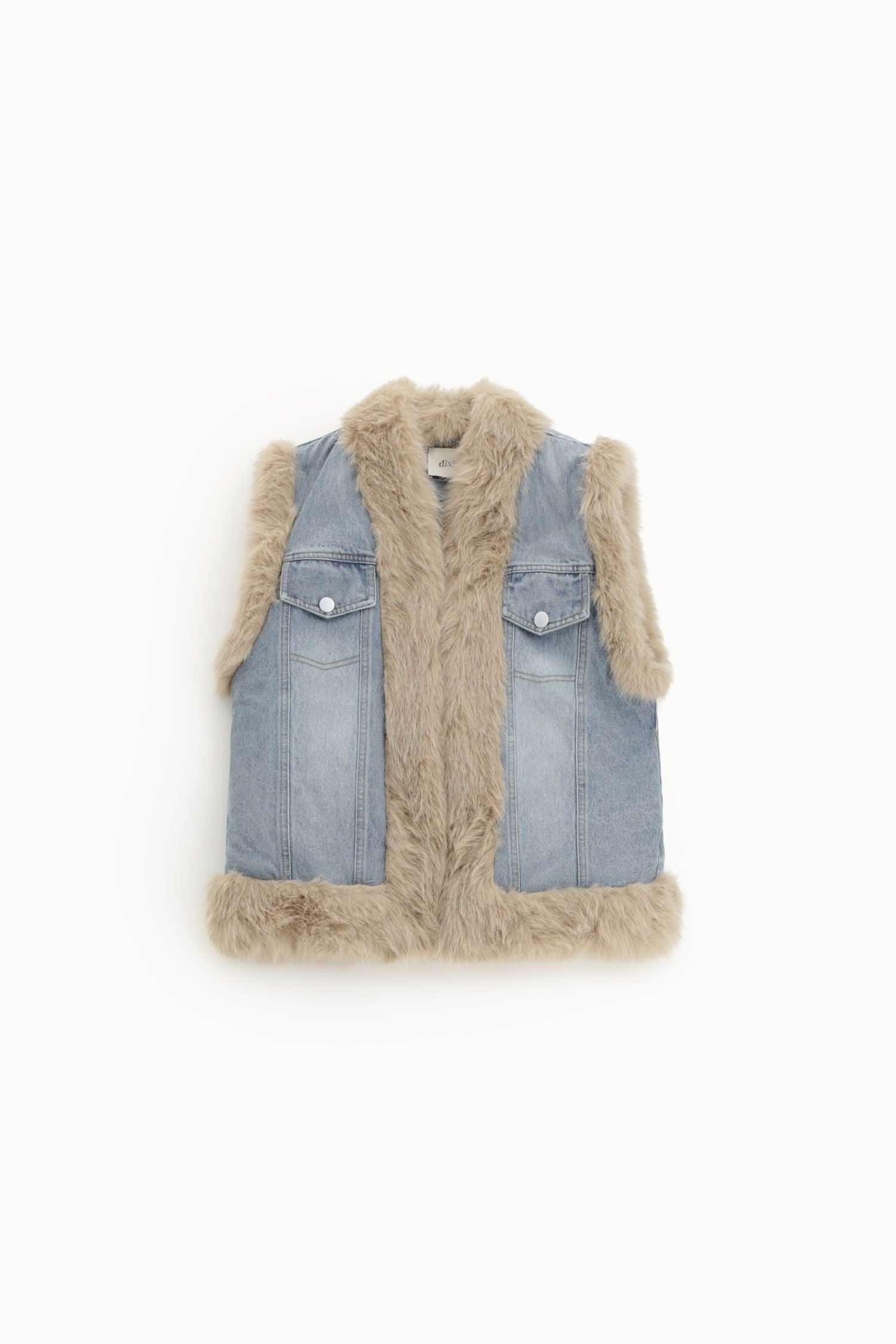 Vivi ogni giornata con un tocco originale grazie a questo gilet senza maniche: il denim si abbina ai bordi in finta pelliccia per un look che attira subito l’attenzione. Le tasche sul petto sottolineano uno stile pratico, ideale sopra abiti a fantasia o maglie basic per layering creativo e di carattere.